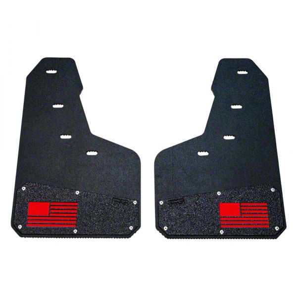 Drill-Less Process. Installing these mud flaps is easy, thanks to the drill-less installation and included Rek Gen support brackets. The debossed red color flag adds a touch of style to your vehicle while also enhancing visibility. With no modification required, these mud flaps are a hassle-free way to protect your vehicle from the elements.