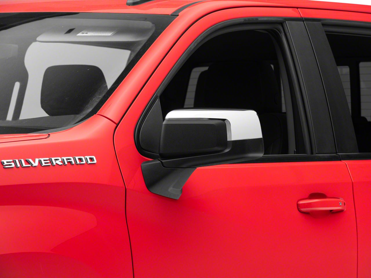 Classic Chrome Styling. Give your 2019-2026 Silverado 1500 the clean, classic touch of chrome with a pair of Top Half Mirror Covers. Specifically designed for Silverado's equipped with the original factory side mirrors, these Mirror Appliques install over your stock mirrors in just minutes to create an entirely new look for your truck. These Covers perfectly complement your existing factory chrome trim and look great when accented with other aftermarket chrome accents.