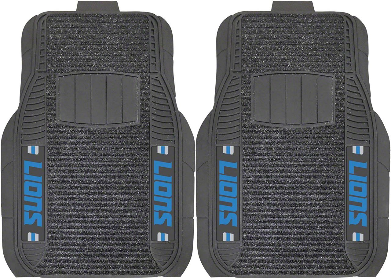 Application. These Molded Front Floor Mats with officially-licensed Detroit Lions logo feature a universal design so they will fit most makes and models of vehicles. These Mats can be trimmed to fit if necessary. Sold as a set of two Front Mats.