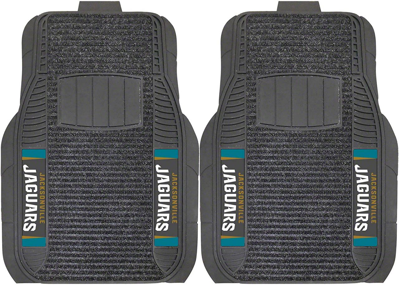 Application. These Molded Front Floor Mats with officially-licensed Jacksonville Jaguars logo feature a universal design so they will fit most makes and models of vehicles. These Mats can be trimmed to fit if necessary. Sold as a set of two Front Mats.