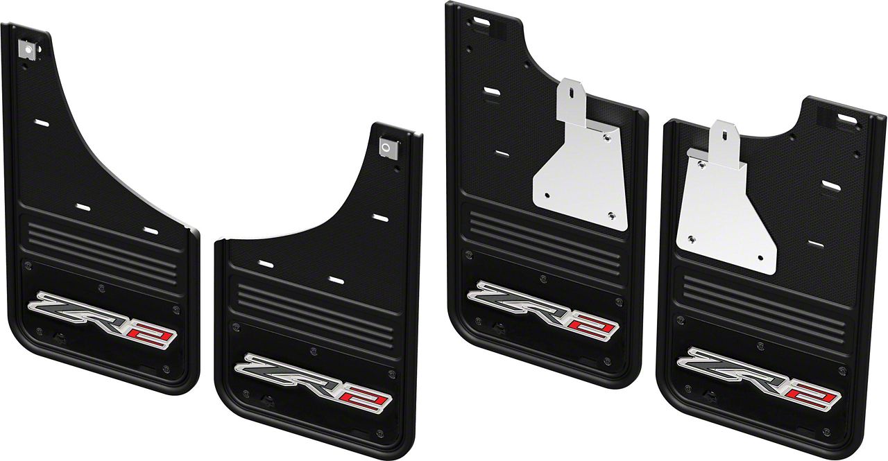 The Gatorback series mud flaps are the industries highest quality heavy duty mud guards! The rugged design and quality finish of these mud flaps make the perfect compliment to your truck. Featuring a 1/2" thick rubber flap with an embossed stainless steel plate, these mud flaps are sure to impress while they protect your investment. Officially licensed logos like the ZR2 logo give your Silverado truck a custom look that is a step above the competition.Installation is made simple featuring no body drilling to install using factory exisiting screws. Installation takes about 5 mins per flap and you can use only the tools you have at home. The Gatorbacks install flush to the inside of the wheel well so they work with step bars, power boards or side steps. Gatorback mud flaps feature a removable stainless steel plate with formed edges for strength, and hidden t-nuts. The cold formed 304 stainless steel plate is 10 1/4" x 5", die-stamped with official licensed logos for your Chevy pickup. The mudflaps also feature a lifetime warranty on the rubber portion of the flap. If the flap comes off the truck or is damaged to due to normal wear and tear, let us know and we will send you a replacement piece of rubber at no charge.