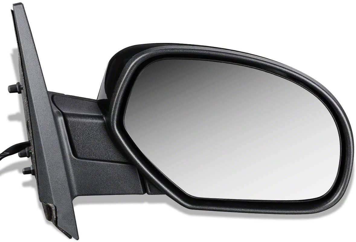 Specs. If your Silverado's mirror has been damaged, this Passenger Side OE Style Powered Heated Mirror is just what you're looking for. It's made with a factory style for easy installation, and has a black textured finish. Choose this mirror if you want a replacement that will fit right in with the rugged style of your truck.