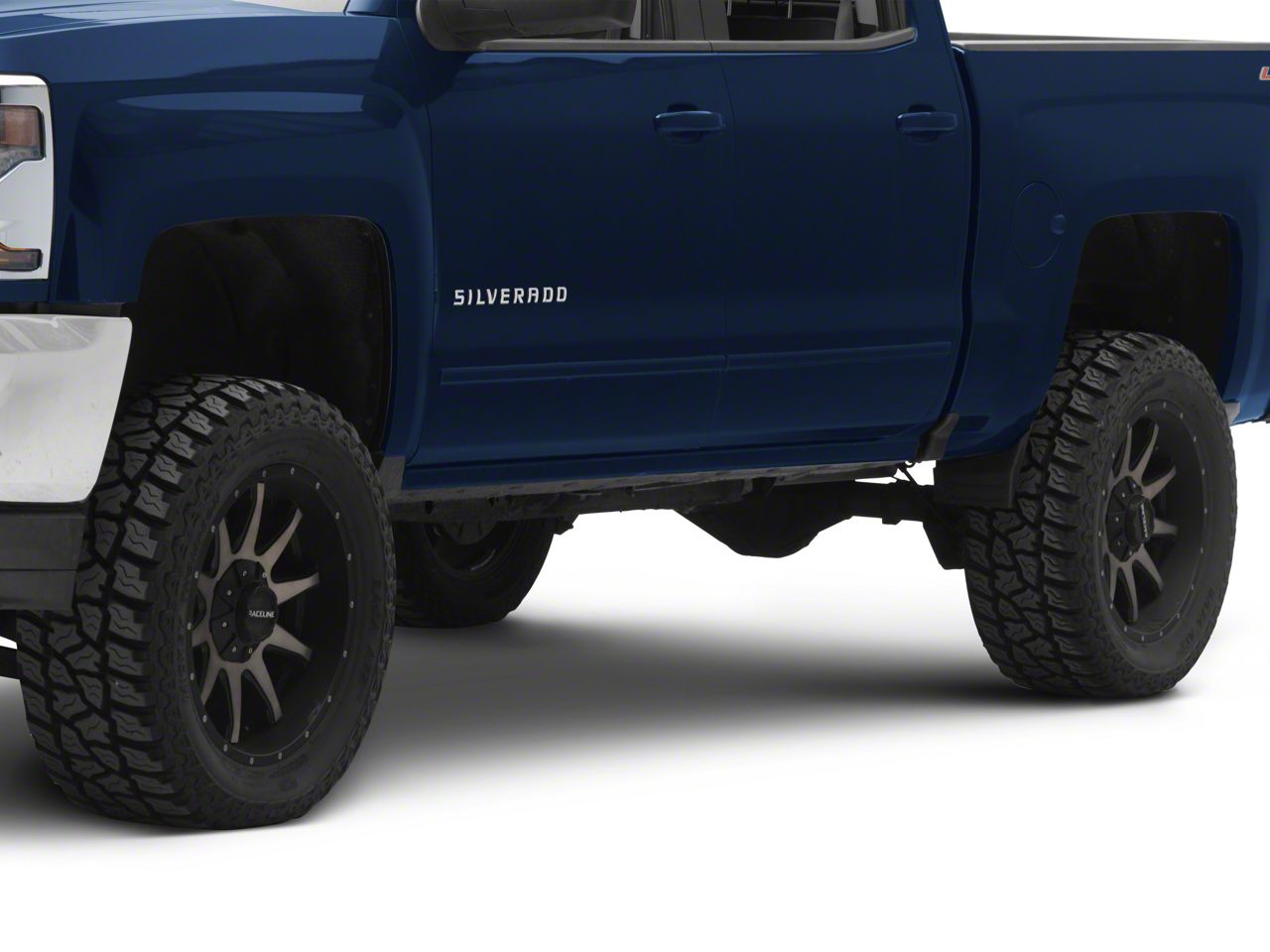 Application. An OE Style Rocker Panel is fabricated to accurately suit 2014-2018 Silverado 1500 Crew Cabs.