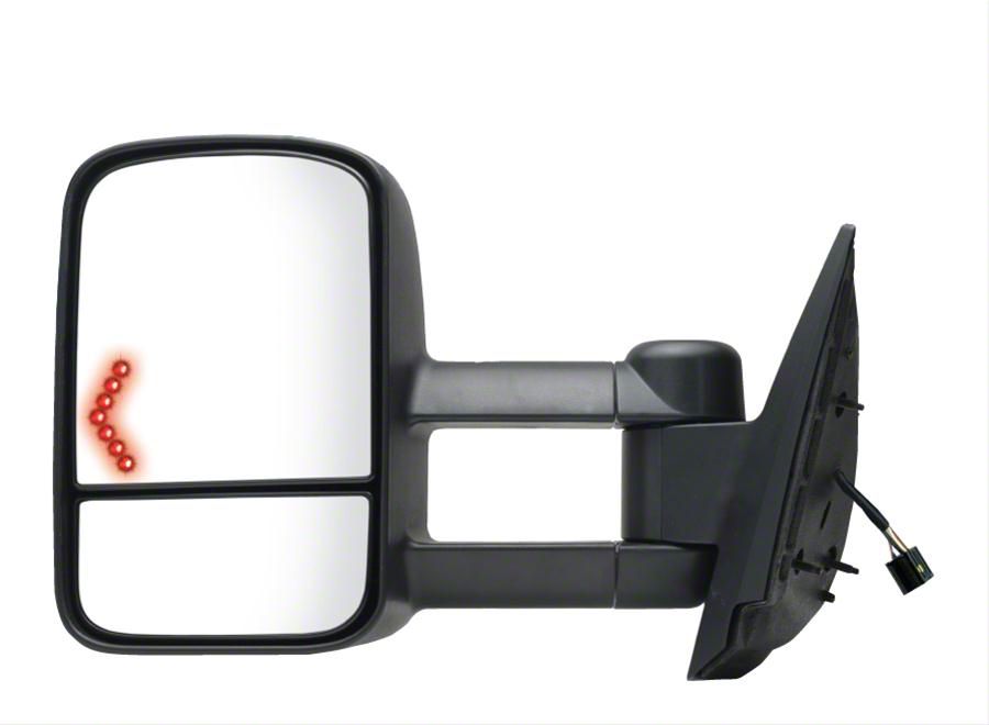 OEM Style Replacement Towing Mirror. Replace your 1500 Silverado's cracked or broken towing mirror with a brand new OEM style replacement. This manual folding/telescoping, dual lens, towing mirror is designed to replace the power-operated, heated driver side mirror found on 2007-2014 Chevrolet Silverado 1500 models not equipped with mirror mounted turn signal lights.
