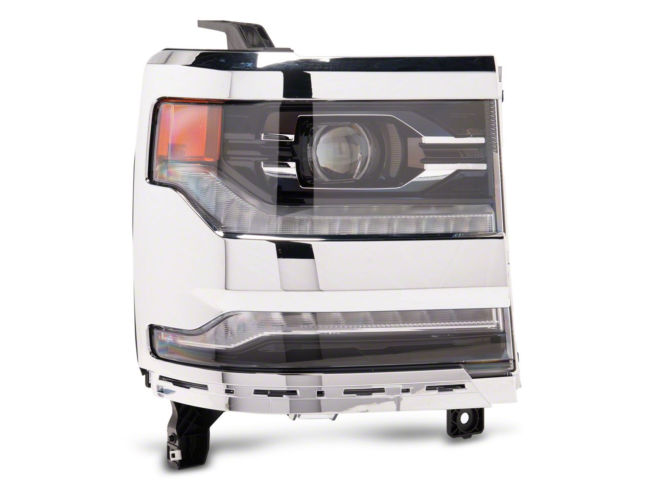 Application. The OEM Style Headlight with Chrome Trim; Passenger Side; Black Housing; Clear Lens fits 2016-2018 Silverado 1500 with Factory LED Headlights models.