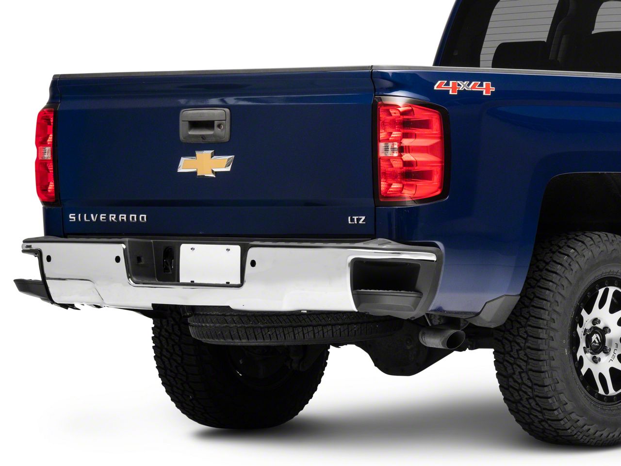Reinforced Off-Road Protection. Shield your Chevrolet Silverado 1500’s rear end by installing this Chrome OEM-Style Steel Rear Bumper; Pre-Drilled for Backup Sensors for more confident and stylish driving. This tough bumper offers durable protection while providing high-grip step areas for safer and easier bed access. It is also designed with pre-drilled holes for backup sensors and license plate.