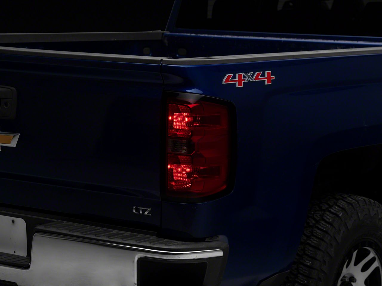 Application. This OEM Style Tail Lights with Black Housing and Red/Clear Lens fits all 2014-2018 Chevrolet Silverado 1500 models with Factory Halogen Tail Lights.