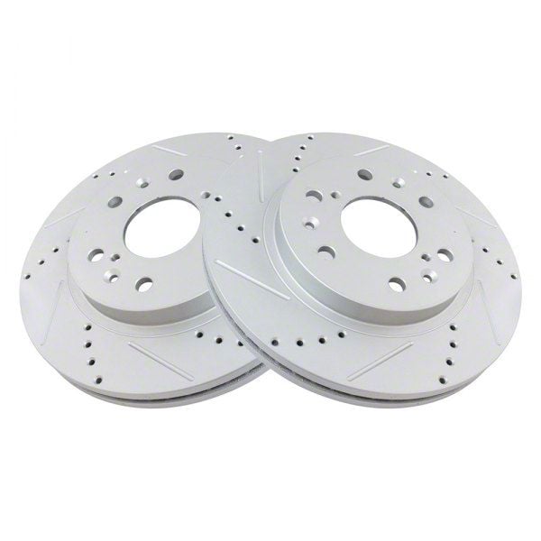 Rust-Resistant Zinc Plating. The Performance Drilled and Slotted 6-Lug Rotors are finished with a corrosion-resistant zinc coating to withstand harsh elements and road conditions. This not only improves longevity but also helps maintain a clean, professional look behind your wheels.