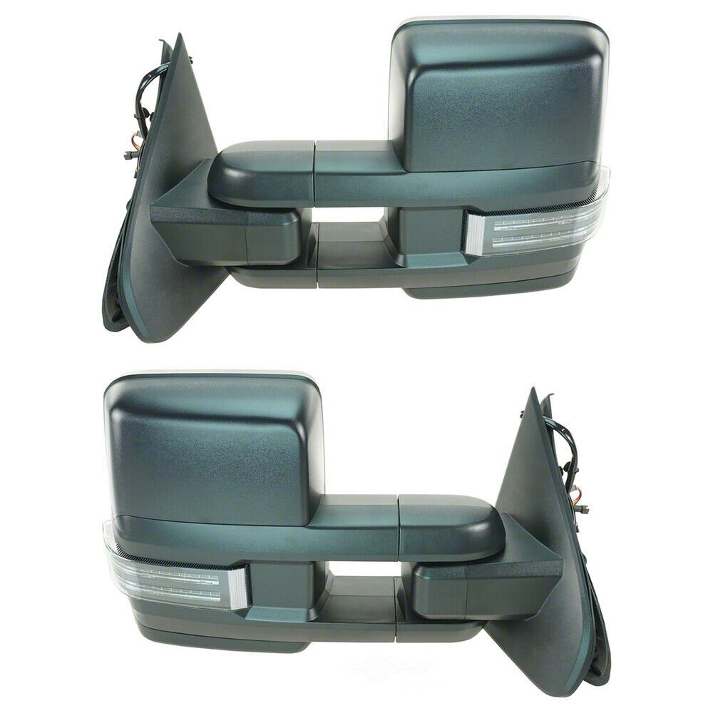 OEM Style Replacement Towing Mirrors. Replace your 1500 Silverado's cracked or broken towing mirrors with a brand new OEM style replacements. These manual telescoping, power folding and power-operated towing mirrors are designed to replace the heated mirrors found on 2014-2018 Chevrolet Silverado 1500 models equipped with temperature sensor, spotlight, and mirror mounted turn signals.