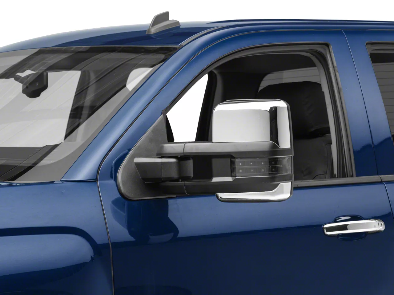 Application. These Powered Heated Towing Mirrors with Ambient Temp Sensor and Smoked LED Turn Signals; Chrome are designed to fit 2014-2016 Chevrolet Silverado 1500 models. Driver and passenger side included.
