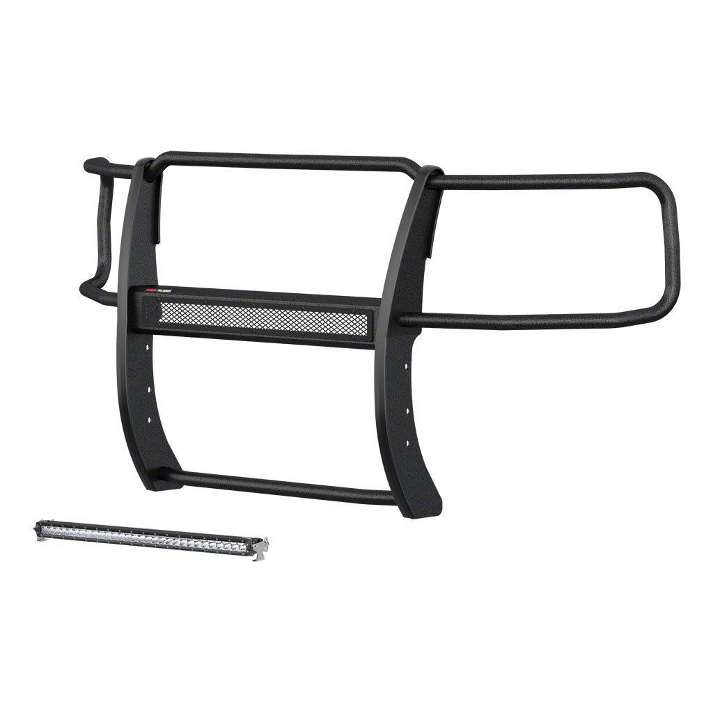 Illuminate the Night. The Pro Series Grille Guard doesn't just protect your Silverado 1500; it also illuminates the night. The integrated 30-inch LED light bar offers superior illumination, empowering you to conquer any terrain, day or night. The high-powered LEDs emit a powerful beam of light that cuts through the darkness, revealing hidden obstacles and enhancing visibility in challenging conditions.