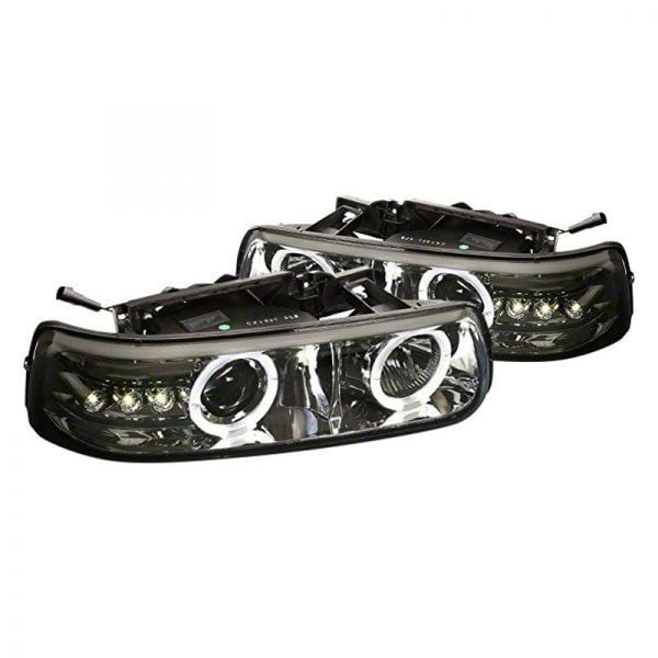Application. The Dual Halo Projector Headlights; Chrome Housing; Smoked Lens fits 1999-2002 Silverado 1500 Models.