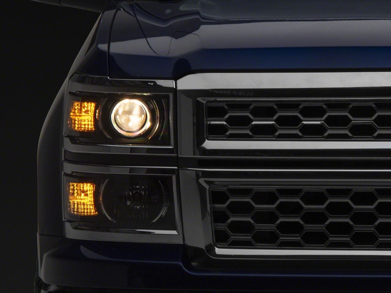 Application. The Projector Headlights with Chrome Trim fits the 2014-2017 Silverado 1500 with Factory Halogen Headlights.