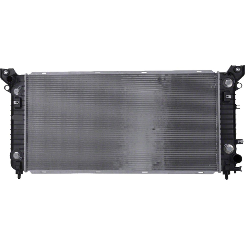 Dependable Cooling Control. Radiator is designed to restore stable cooling performance while helping manage heat more effectively during daily driving and demanding operating conditions. This direct replacement unit includes a transmission oil cooler, giving it added functional value for drivers who need dependable support from both the cooling system and transmission fluid temperature management. Its raw aluminum finish radiator, matte black finish end caps, and service-ready construction make it a practical replacement solution on 2014 - 2016 V8 Chevrolet Silverado 1500 models and 2017 V8 Chevrolet Silverado 1500 models without Towing Package.