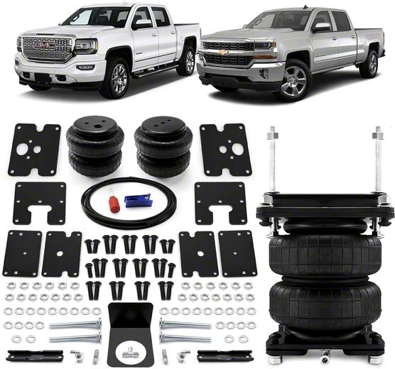 Direct Fit Kit. Engineered as a direct-fit replacement, this air helper spring kit ensures a hassle-free installation process. Its application- and vehicle-specific properties guarantee a perfect fit for your Silverado 1500, eliminating the need for any modifications. The kit features CNC-cut aluminum alloy material, showcasing modern production technology that ensures durability and reliability.