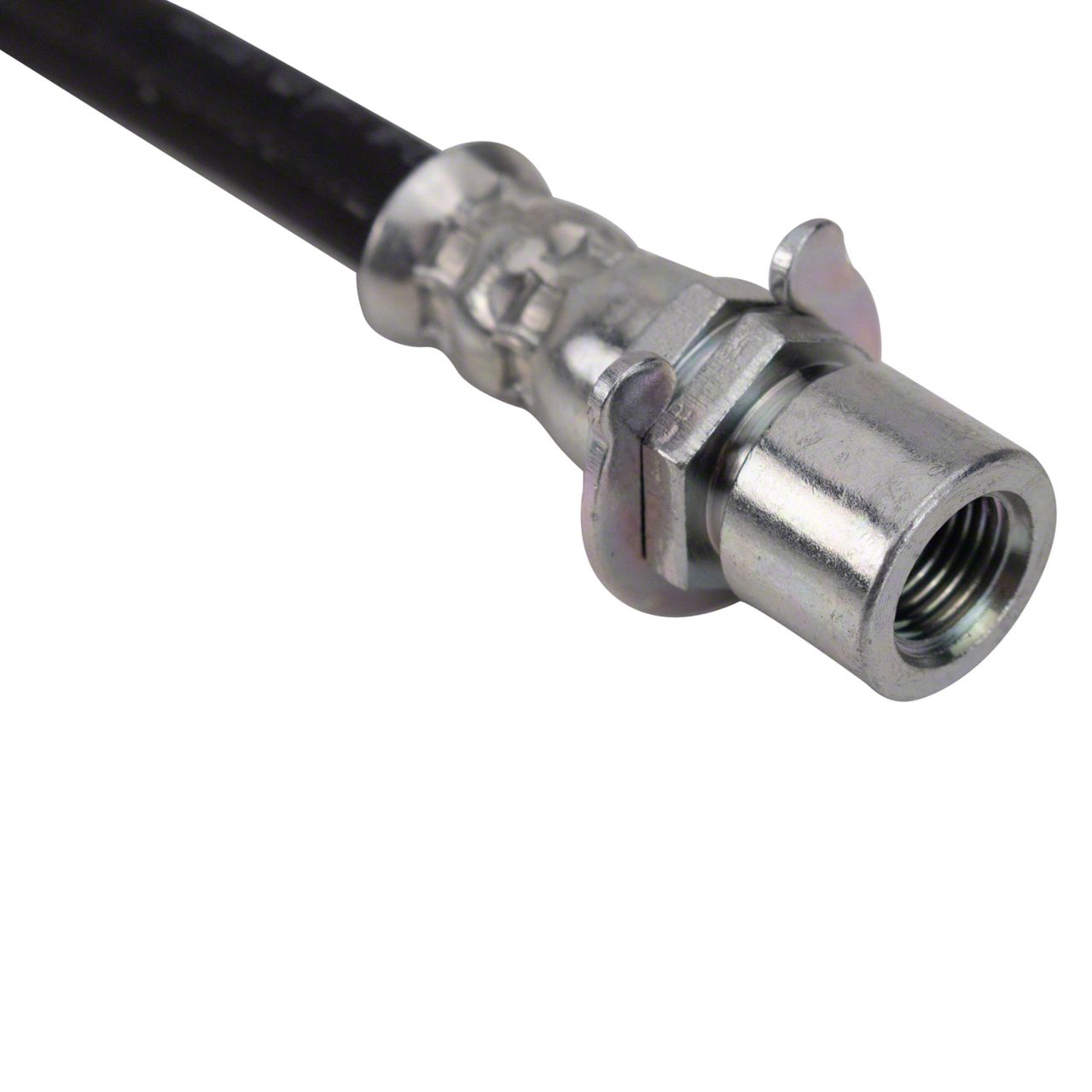 Construction and Appearance. Manufactured using high-quality materials, the Rear Brake Hose is engineered for durability and a long service life. It is made to meet or exceed OEM specifications and features a clean, professional finish that blends seamlessly with your vehicle's existing components.