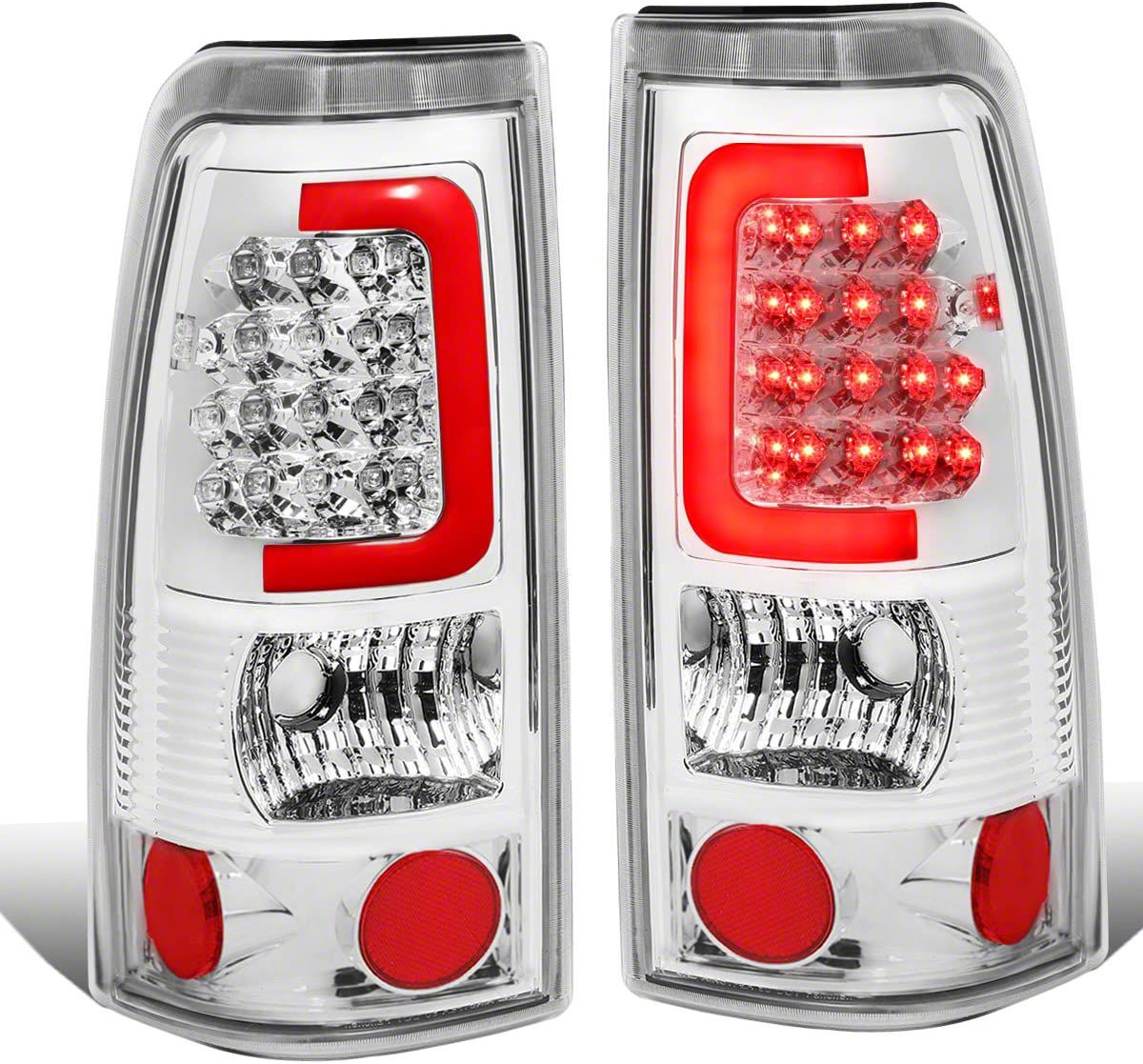 Application. The Dual Red C-Bar LED Tail Lights; Chrome; fits all 1999-2002 Silverado 1500 Fleetside.