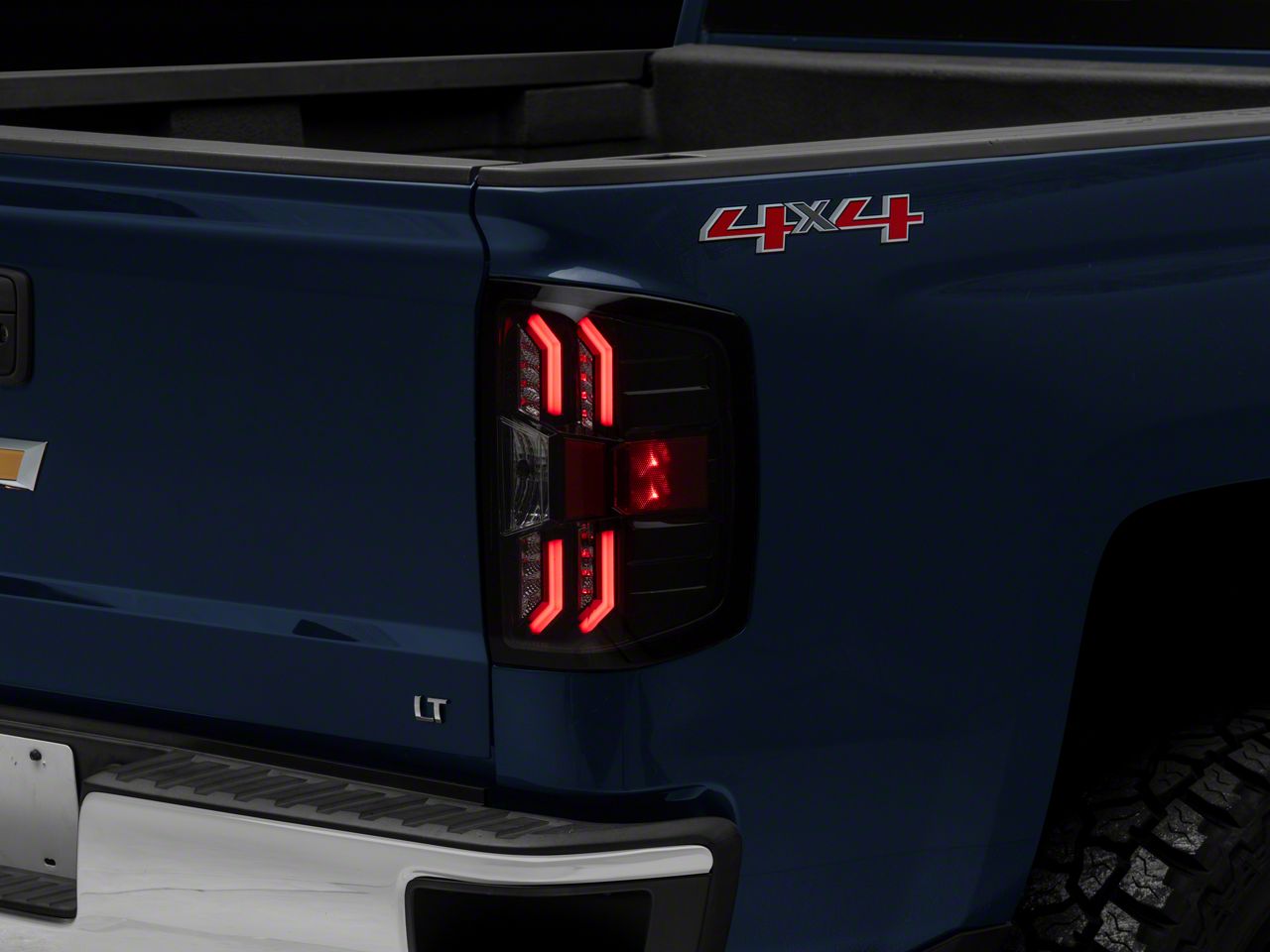 Application. This Renegade Series LED Tail Lights with Gloss Black Housing and Clear Lens fits all 2014-2018 Chevrolet Silverado 1500 models without Factory LED Tail Lights.