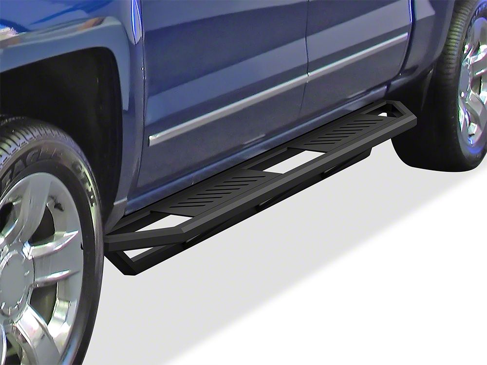 Rugged Aesthetic. Enter and leave your Silverado with ease with this Rocker Armor Side Step Bars; Matte Black to support your step. It features strong look that compliments the robust style of your vehicle while also giving you a reliable platform to elevate your footing. It features a strong look that features small gaps to prevent mud and dirt from amassing on the surface.