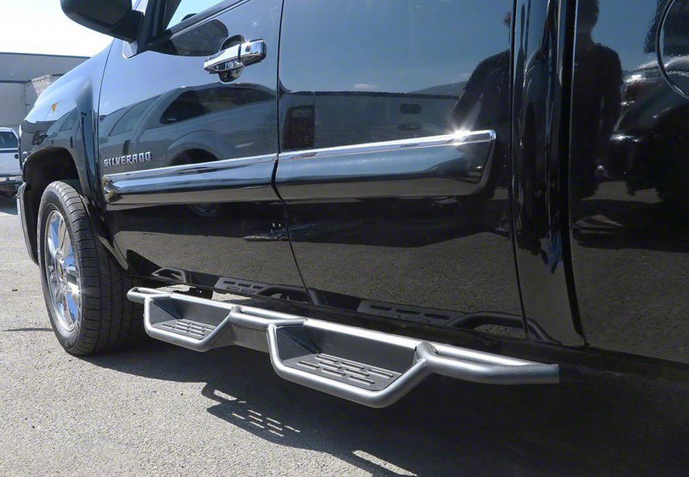 Baja-Inspired Accessibility. The Round Tube Drop Style Nerf Side Step Bars offer a unique combination of functionality and style, transforming your Silverado with a Baja-inspired look. These side steps provide a 6-inch-wide step surface, ensuring safe and easy access to your cabin. Their low-profile design not only enhances the appearance of your Silverado but also contributes to ease of entry and exit.