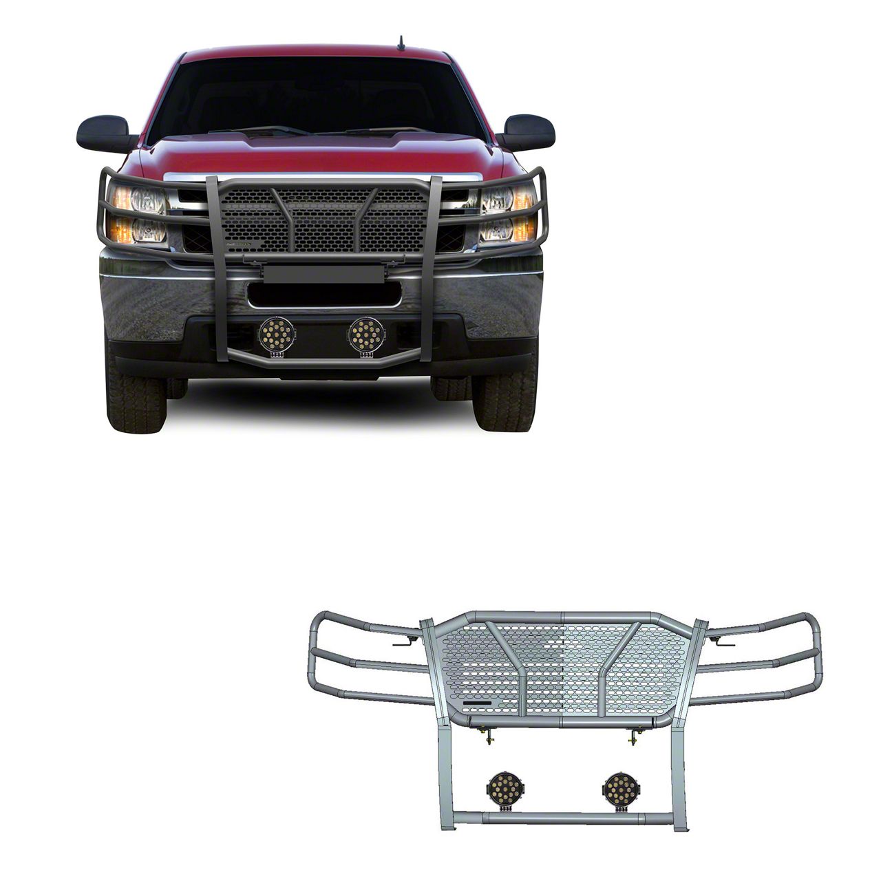 Rugged Heavy Duty Grille Guard with 7-Inch Black Round LED Lights; Black (07-13 Silverado 1500)Find parts that fit my vehicle