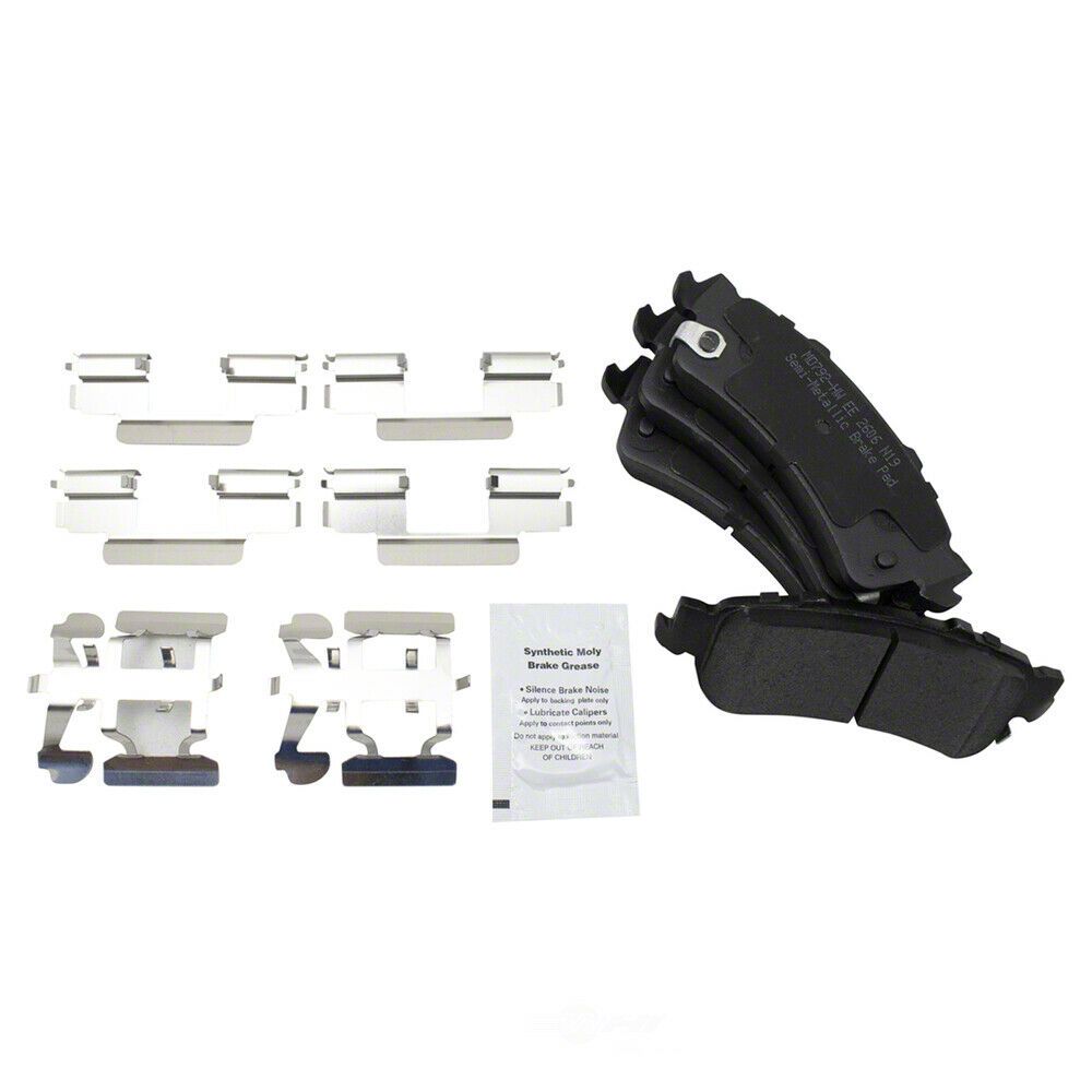 Construction and Appearance. Constructed from semi-metallic friction material with integrally molded bonding, these brake pads feature chamfered edges and multi-layer shims for noise reduction. Finished with a black steel backing plate and black fiber shims, the pads balance durability with quiet operation.