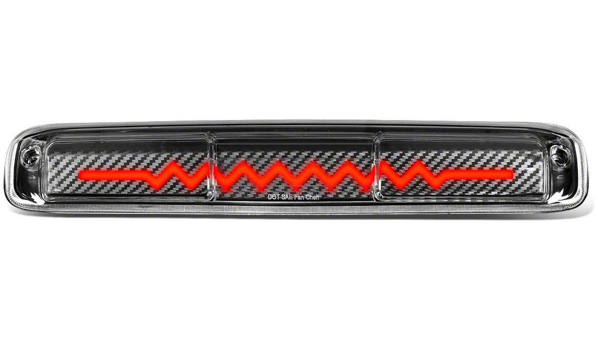 Higher Visibility. Add fun style and high visibility to your 1500 Silverado with a Carbon Fiber Look Sequential Heartbeat LED Third Brake Light. When activated this third brake light will sequence from the outer light inward and then stay solid for as long as the brake pedal is depressed, just like your factory third brake light. The sequencing action will ensure that you catch the attention of distracted or careless drivers when you hit the brakes.