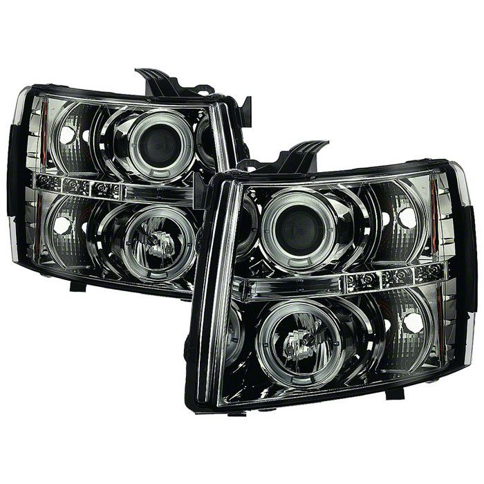Application. This pair of Signature Series LED Halo Projector Headlights with Chrome Housing and Smoked Lens fits all 2007-2013 Chevrolet Silverado 1500 models.