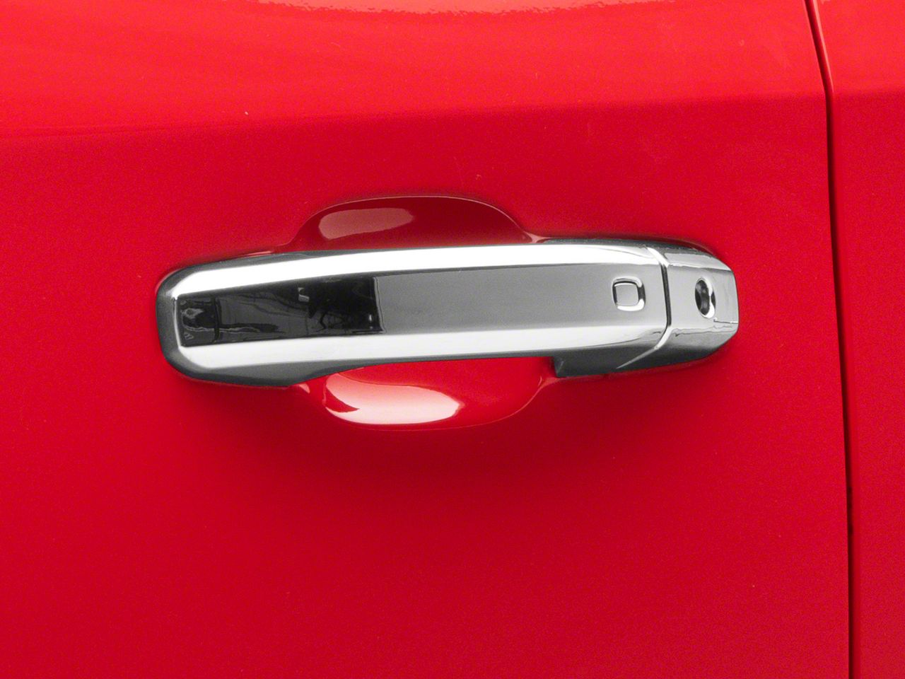 Enhance Your Silverado’s Exterior Appearance. If you’re unhappy with the textured black plastic or paint-matched appearance of your Silverado’s factory door handles, consider upgrading your pickup’s aesthetic with these premium chrome Smart Key Door Handle Covers. These premium ABS plastic door handle covers feature a lustrous chrome finish for a premium appearance, ideal for use on applications with chrome wheels, bumpers, and accessories. These covers are also fully smart-key compatible, featuring push-button holes in the cover to actuate the automatic unlock sequence.