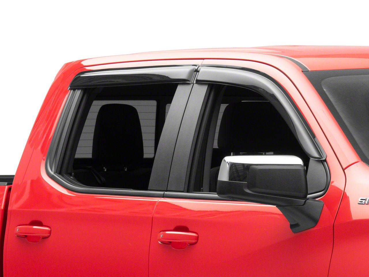 Application. These Smoke Rain Guards are specifically designed to fit the front and rear windows of 2019 to 2025 Chevrolet Silverado 1500 Crew Cab models.