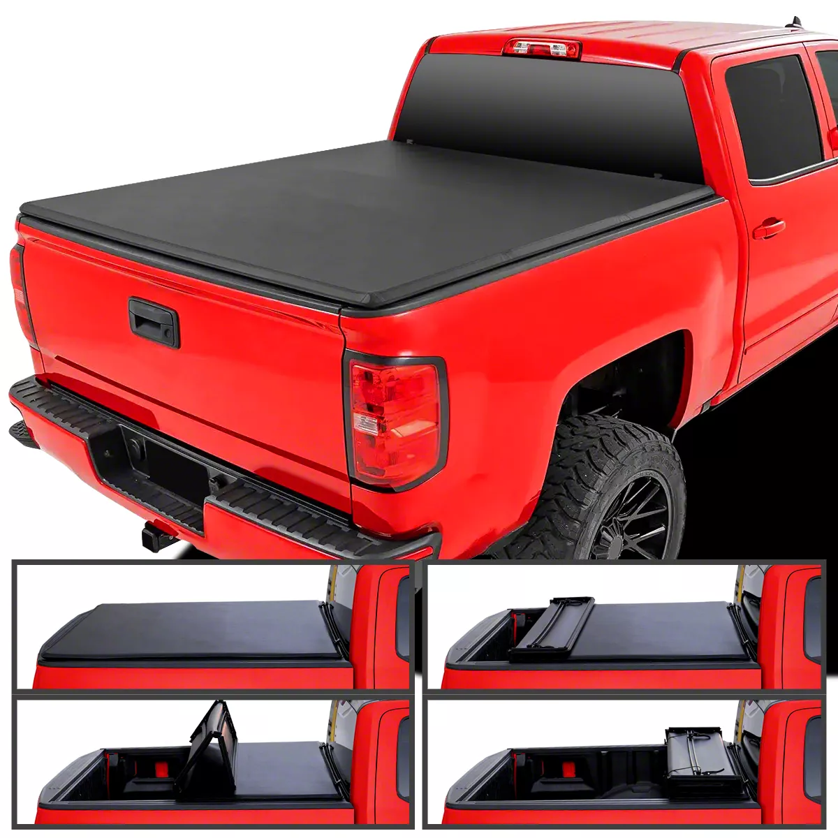 Compact and Reliable Cargo Protection. The Soft Quad-Fold Tonneau Cover provides a convenient and efficient way to secure and protect your cargo. Its quad-fold design allows for compact operation, while the durable vinyl construction shields your truck bed from weather and debris, keeping your items safe and dry.