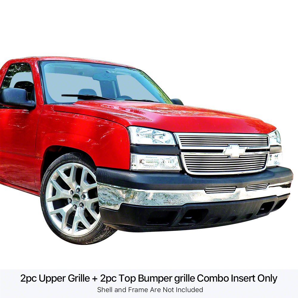 Fit 2006-2006 Chevy Silverado 1500 /2006-2006 Chevy Silverado 1500 HD /2005-2006 Chevy Silverado 2500 HD /2005-2006 Chevy Silverado 3500 /2007-2007 Chevy Silverado Only for Classic Models Horizontal Billet Stainless Steel Polish Main Upper + Top Bumper Stainless Steel Billet Grille