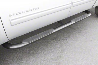 4-Inch Oval Bent Nerf Side Step Bars; Polished Stainless (19-26 Silverado 1500 Double Cab)Find parts that fit my vehicle