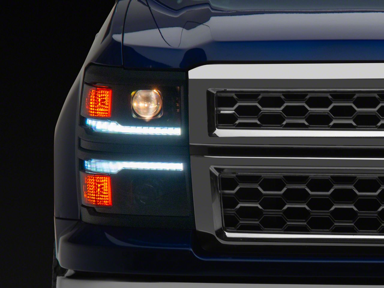 Application. This pair of Switchback Sequential LED Bar Projector Headlights with Matte Black Housings, Smoked Lenses, and Black Trims is designed to fit all 2014 to 2015 Chevrolet Silverado 1500 models.