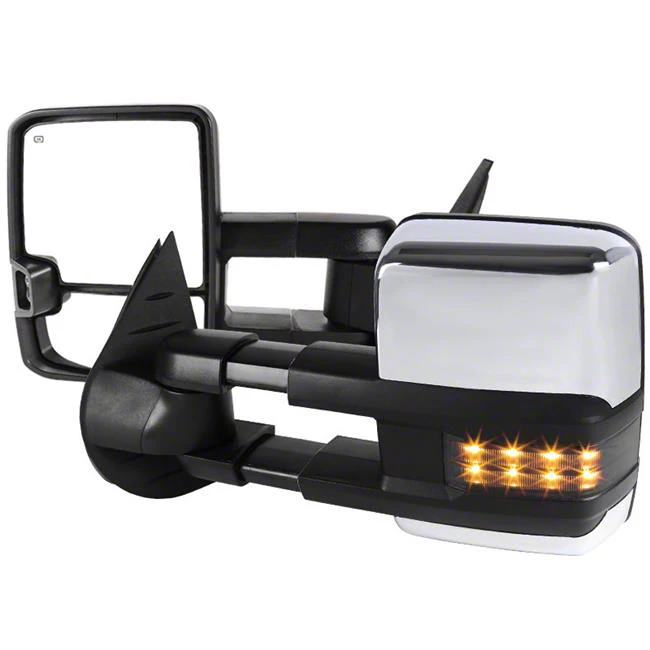 Safe Towing. Made for the Chevrolet Silverado 1500, these Powered Heated Manual Extendable Towing Mirrors are meant to help you properly see your cargo in the side mirror when towing. Crafted from ABS plastic, these mirrors are longer than your stock mirrors and are a great upgrade to drivers that regularly haul wide loads and campers or tow with their Silverado.