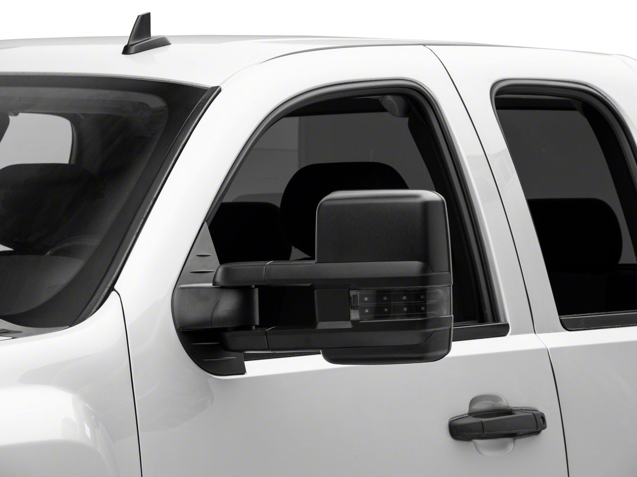 Application. The Powered Heated Manual Extendable Towing Mirrors with Smoked Turn Signals; Textured Black fits 2007-2013 Silverado 1500 Models.