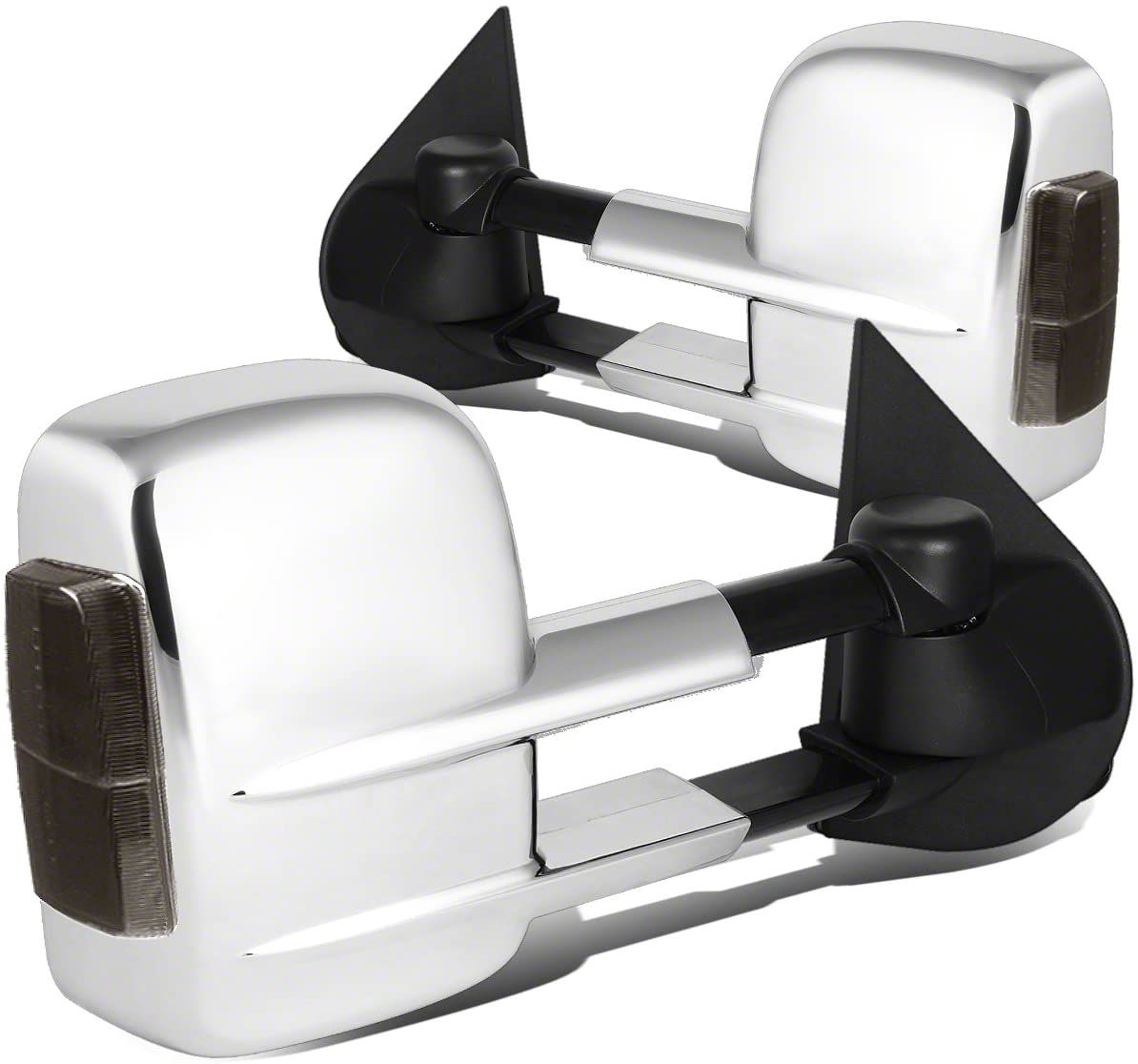 Powered and Heated. Made for the Chevrolet Silverado, these Towing Mirrors come in pairs and have a polished chrome and matte black finish. A powered and heated model, these mirrors also have smoked amber LED signal lights.