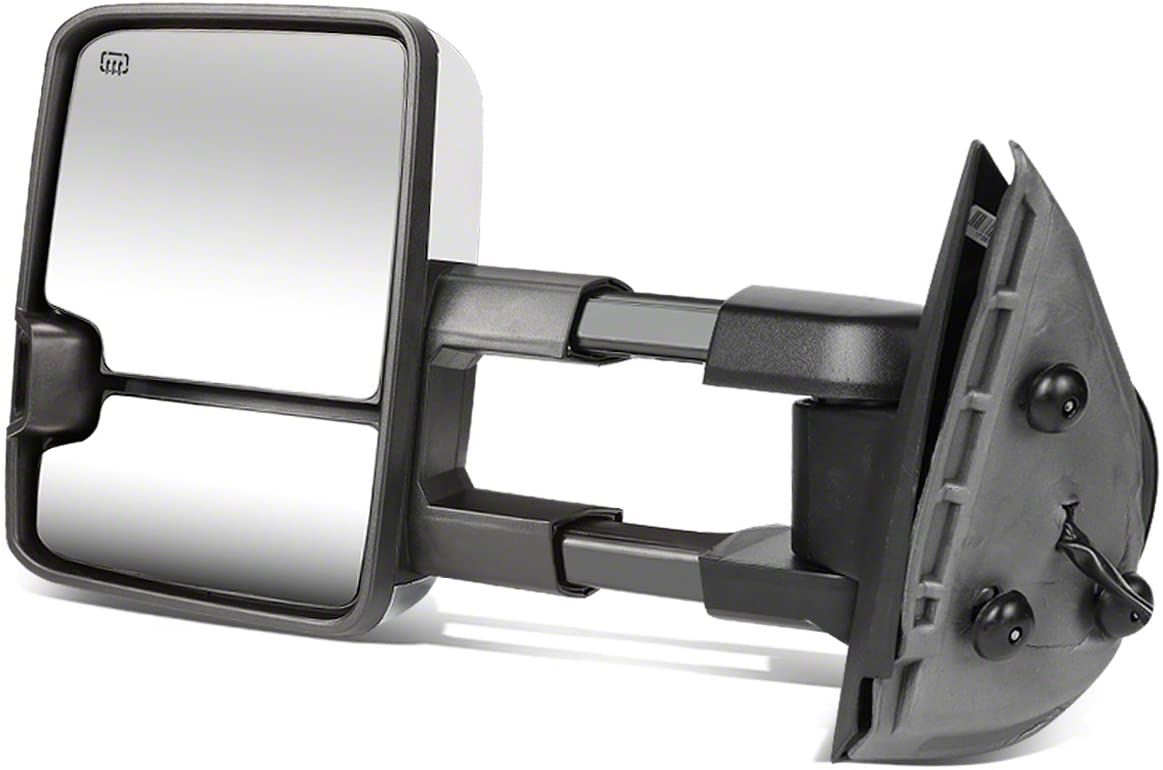 Boost Your Vision. Monitoring the road behind your truck can be hard when towing a trailer, but not if you install this power-heated towing mirror. This well-built accessory comes with smoked amber LED signals and boasts an eye-catching chrome finish to enhance the elegance of your ride. It also boasts telescoping adjustment that extends your vision and eliminates blind spots to increase safety.