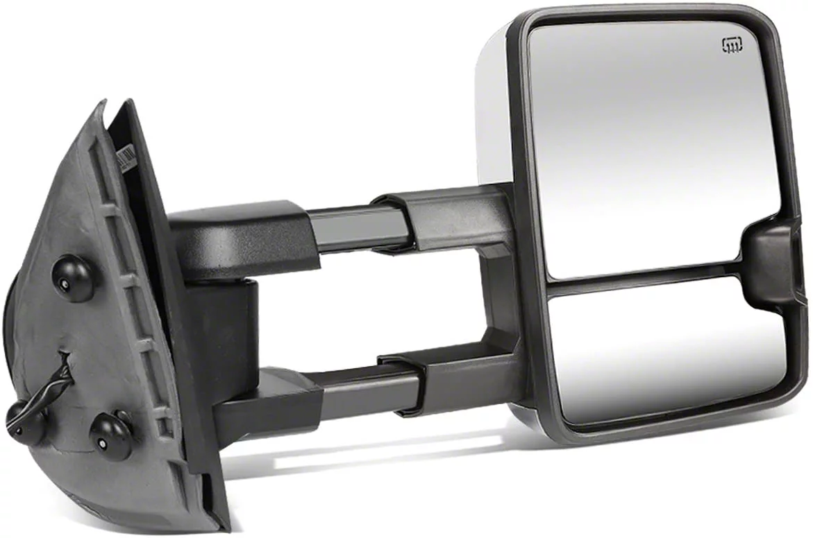 Towing Optimized. Normal mirrors are not designed to see past anything longer than your Silverado, which makes them sub optimal when carrying trailers or hauling longer cargo, for that this Powered Heated Towing Mirror with Smoked LED Turn Signal; Chrome; Passenger Side is right for you. Made to offer greater vision of the road with its extending shaft and telescoping function. The heating element also ensures clear display in cold weather.