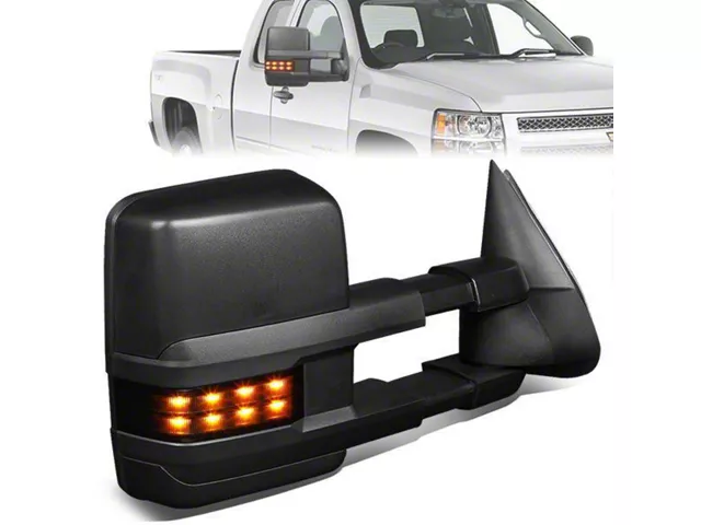 Telescoping Mirror. Featuring manual telescoping so you can adjust your view at any time, DNA Motoring's Silverado 1500 Towing Mirror is ideal for vehicles with wide or long loads. Directly replacing your OEM side mirror, this part provides a wider view of the road behind you. It is compatible with your vehicle's mirror systems, meaning you don't have to worry about the cold damaging the mirror. The tough housing also has an LED turn signal built into it, which cuts through mist and darkness to show other road users exactly what you're doing.