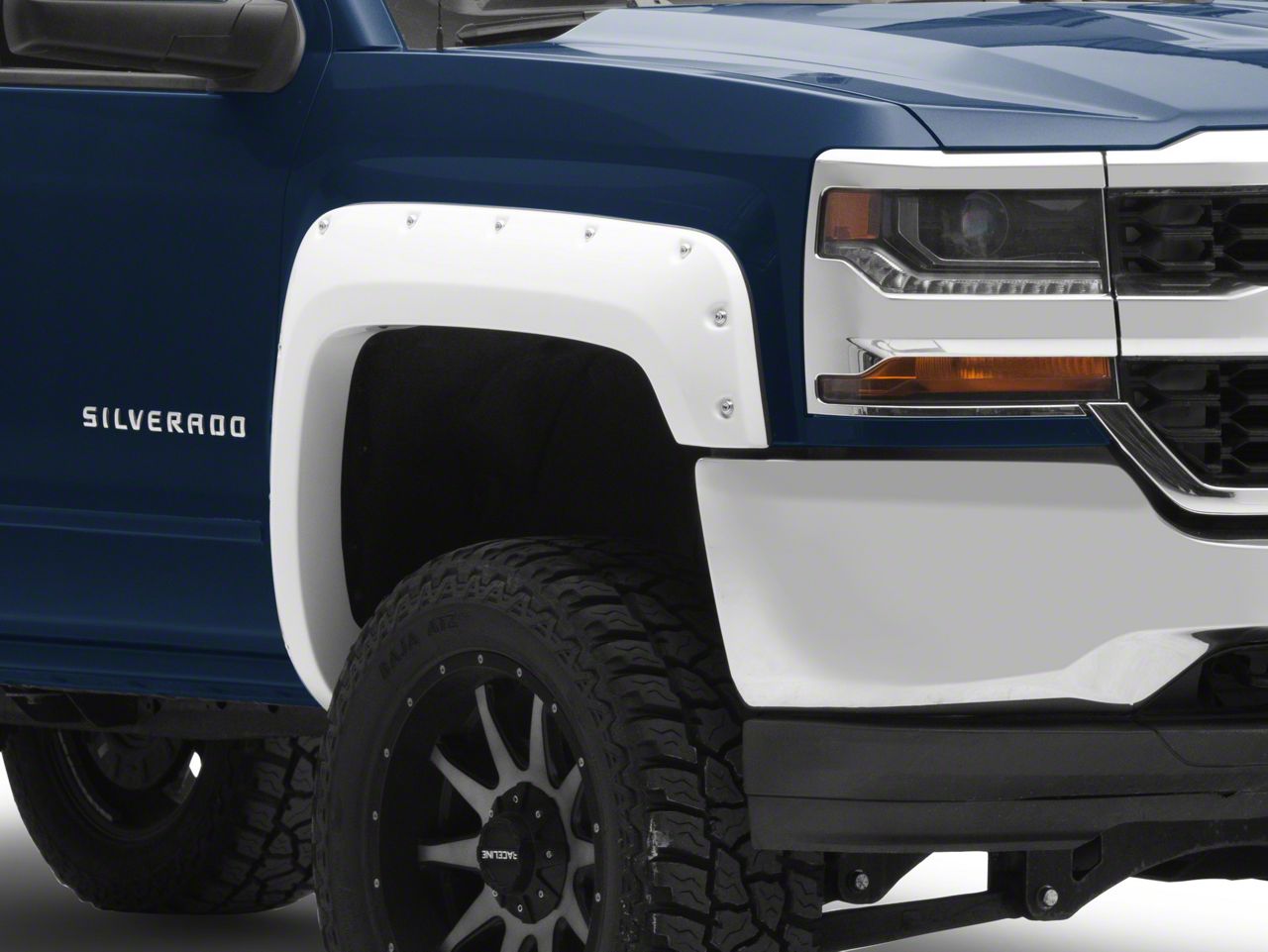 Application. The EGR Traditional Bolt-On Look Fender Flares; Summit White fits all 2014-2018 Silverado 1500 with 5.80-Foot Short Box models.
