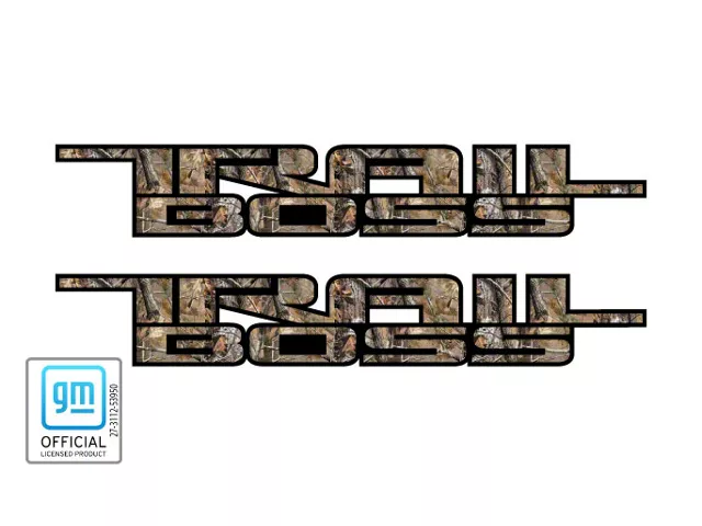 Bed Side Decals. Update the exterior styling of your 2019-2026 Chevrolet Silverado 1500 with a pair of officially licensed Trail Boss Decals that feature a Camo Realtree AP design. These officially licensed decals are printed on the highest quality vinyl material using the exact same fonts and logos that are used by Chevrolet when creating their very own products.