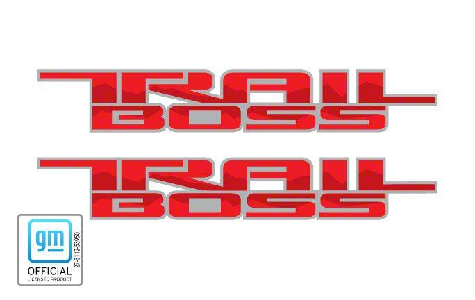 Bed Side Decals. Update the exterior styling of your 2019-2026 Chevrolet Silverado 1500 with a pair of officially licensed Trail Boss Decals that feature a Gray and Red design. These officially licensed decals are printed on the highest quality vinyl material using the exact same fonts and logos that are used by Chevrolet when creating their very own products.
