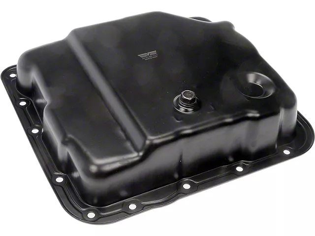 Durable Construction. This transmission oil pan features premium stamped steel for superior durability and impact resistance. The pan is also coated in a black, corrosion-resistant coating to guard the underlying steel against exposure to road salt and other corrosives.