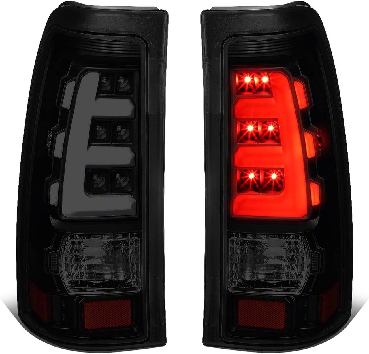 Construction and Features. These tail lights are housed in a durable black ABS plastic casing with a smoked polycarbonate lens that adds a stylish, contemporary look while ensuring the lights are weather-resistant, durable, and impact-resistant. The LED technology provides superior illumination, which is crucial for safety during nighttime driving and adverse weather conditions.