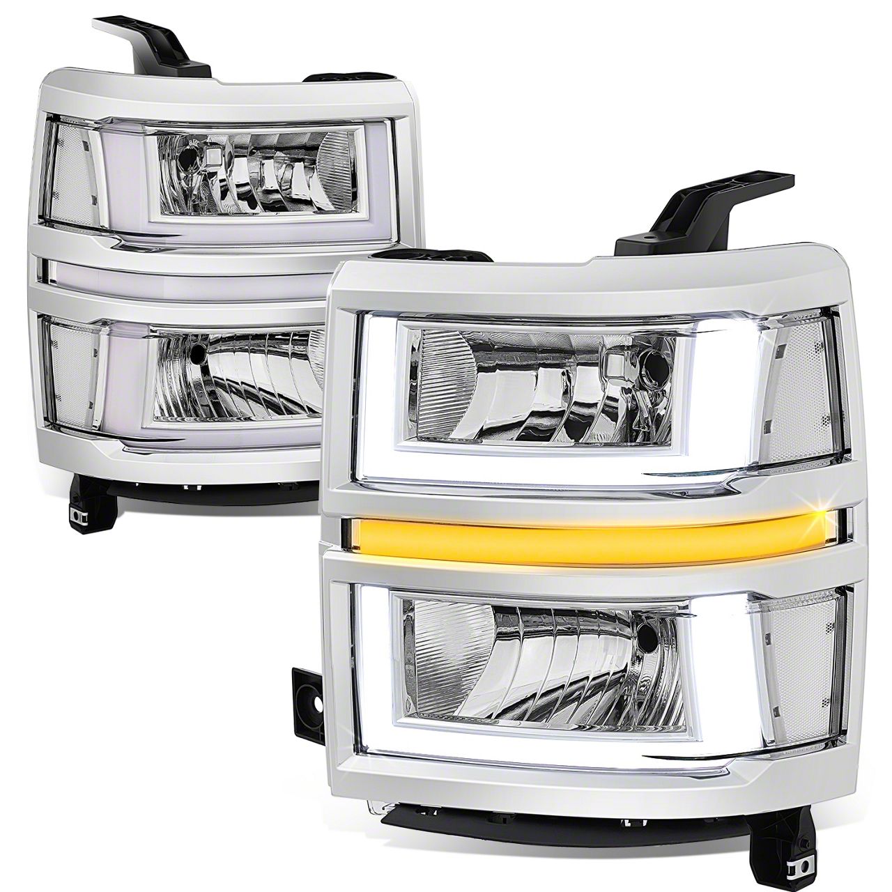 Modern Styling With Enhanced Visibility. The U-Shaped LED DRL Sequential Headlights with Clear Corners add a stylish and functional upgrade to your Silverado 1500. The integrated U-shaped LED daytime running lights and sequential turn signals enhance visibility and provide a contemporary look to your vehicle.