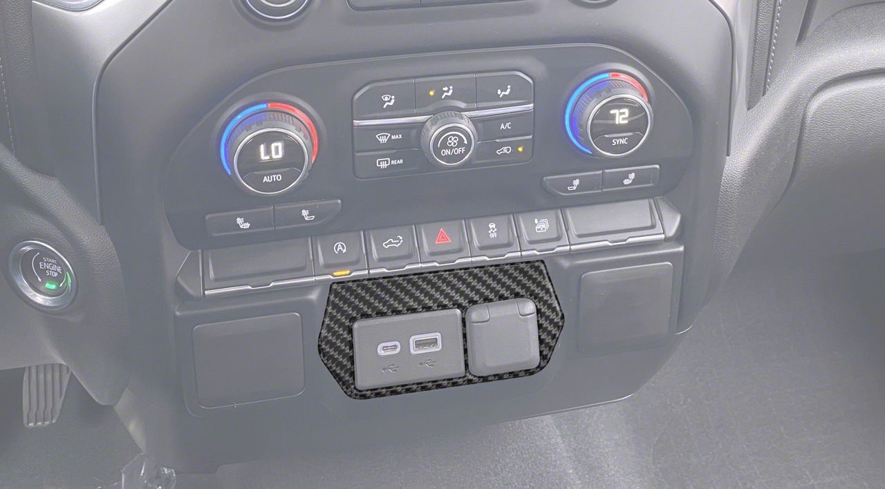 Application. The USB Center Dash Accent in forged carbon fiber is compatible with 2019-2021 Chevrolet Silverado 1500 and 2022 Silverado 1500 LTD models.