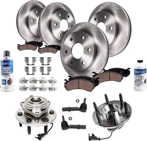 Vented 6-Lug Brake Rotor, Pad, Wheel Hub Assemblies, Brake Fluid and Cleaner Kit; Front and Rear (07-13 4WD Silverado 1500 w/ Rear Disc Brakes)Find parts that fit my vehicle