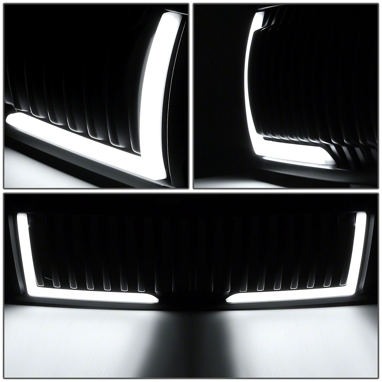 Construction and Appearance. Crafted with a matte black finish, the grille features a distinctive vertical fence pattern for an aggressive appearance. The integrated LED DRL adds a modern lighting touch, while the grille's design allows it to drop right into the factory mounting points without any modifications. Durable materials ensure resistance to road debris and long-lasting good looks.