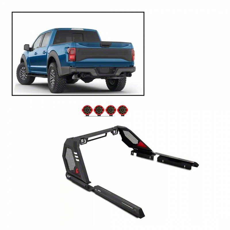 Let the Spotlights Guide You. Have a safe off-road driving at night with the Vigor Roll Bar with 7-Inch Red Round LED Lights in Black. This vigor roll bar kit features a pair of LED cube work lights, and (4)7-inch red round spot LED lights. Both lights provide bold illumination during nighttime driving. This vigor roll bar extends along the bed rails for added tie-down points and also functions as a platform for a diverse range of accessories.